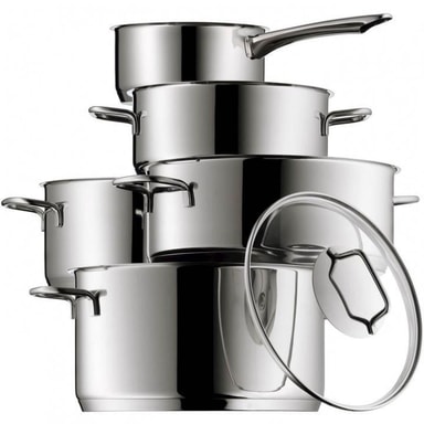 Astoria är ett högkvalitativt kastrullset i 5 delar från WMF. Setet består av 2 högre grytor: 3,3L (20 cm) och 1,9L (16 cm), 2 lägre grytor 2,5L (20 cm) och 1,4L (16 cm). Samtliga med tillhörande glaslock. Dessutom ingår en praktisk såskastrull på 1,5L (16 cm).