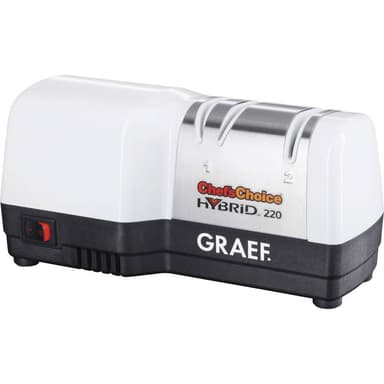 Knivslip Graef CC80DE Vit, SvartDiamantskivor: rotation / fasta Strömbrytare 20° slipning, lämpligt för alla släta och tandade hushålls- fritids- och industri kniv Fast vinkelföring Plasthölje 2 faser Motorisk skarpt fas-diamantskivor ManualeLäs mer om produkten