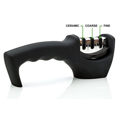 Knivslip med 3 keramiska och diamantbelagda slipar, bladbredd max 4 mmLäs mer om produkten