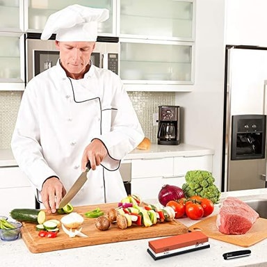Det medföljande slipstödet är hållbart och lätt att använda. Kläm bara fast vinkelguiden på knivryggen, så hjälper redskapet till att behålla rätt slipvinkel. Perfekt att använda tillsammans med brynsten-slipstenen för snabb precisionsslipning.