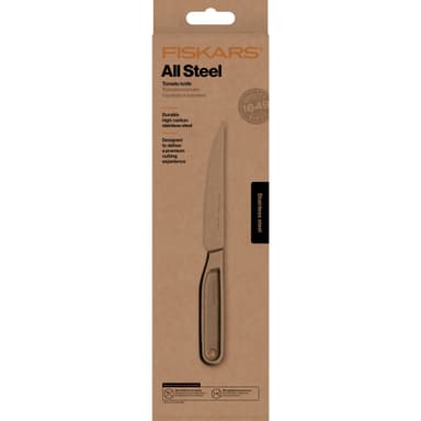 Fiskars All Steel tomatkniv är tillverkad av rent, rostfritt stål av hög kvalitet för suverän prestanda och lång livslängd