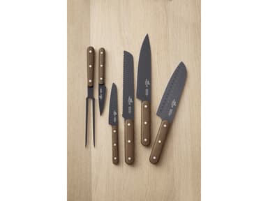 Phenix Walnut knivset i Lion Sabatiers världskända kvalitet, med handtag i exklusivt valnötsträ. De superskarpa knivbladen är tillverkade av starkt rostfritt stål (5Cr15MoV) och belagda med titan. Levereras i en fin presentaskLäs mer om produkten