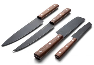 De nya knivarna ifrån Orrefors Jernverk har en unik och exklusiv design med mörka knivblad perfekt kombinerat med ett mörkt trähandtag.