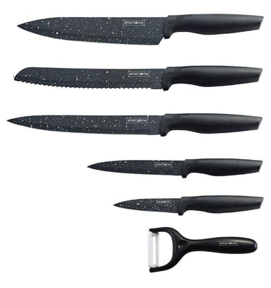 Snyggt och högkvalitativt knivset i 5 delar inklusive 1 grönsaksskalare (totalt 6 delar). Knivarna har en modern och vacker stil med ergonomiska handtag som gör matlagningen till en ren fröjd. Knivarna har även non-stick beläggning vilket gör att knivarna glider otroligt lätt genom matvarorna och förhindrar att det fastnar bitar av exempelvis grönsaker på knivarna. Matlagning i hemmet blir så mycket bättre och roligare med ett set riktigt vassa knivar.