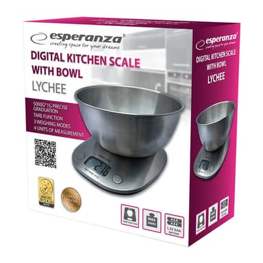 Esperanza LYCHEE köksvåg är ett oumbärligt verktyg för varje matlagnings- och bakentusiast som bryr sig om den perfekta smaken och konsistensen av varje rätt. Tre vägningslägen – vikt, vattenvolym och mjölkvolym – låter dig justera vågen till olika typer av ingredienser, och tack vare den exakta mätsensorn ger den en tillförlitlig mätning på upp till 5000 g med en noggrannhet på 1 g. Den kompakta storleken på enheten och den rymliga 2-liters vågskålen gör den till ett idealiskt verktyg för alla kök, oavsett om det är hemma eller professionellt.