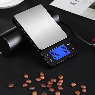 Hög precision: Med en maximal kapacitet på 2 kg och en noggrannhet på upp till 0,1 g, säkerställer denna våg att du kan mäta även de minsta mängderna med precision. Perfekt för kaffebönor, te eller andra ingredienser som kräver noggrannhet.