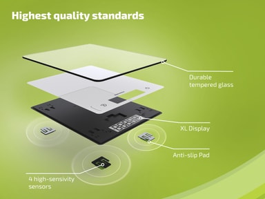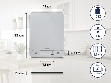 Köksvåg i kompakt och ultratunn design,17 x 22 x 1 cm. Väger upp till 10 kg med en noggrannhet på 1 g, vilket gör den idealisk för t.ex. kryddor. Lättläst display, Tara-funktion och energibesparande automatisk avstängningsfunktionLäs mer om produkten