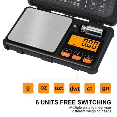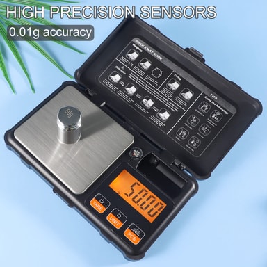 Digitalvåg med gravitationssensor med hög känslighet även för små mängder. Perfekt vid behov av hög noggrannhet som exempelvis smycken, ädelstenar, pulver, te, tobak med mera .Vågen kan väga från 0,03 g till 200 g och har en noggrannhet på 0.01 g.