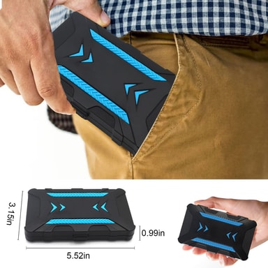 Fickvågen har liten storlek och kan bekvämt tas med. Ett praktiskt lock skyddar vågen vid transport och förvaring. Vågen har en tydlig LED-display och den laddas med medföljande kabel.