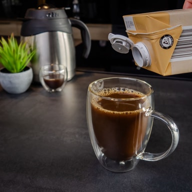 FUNKTION: Tack vare den dubbla väggen håller sig kalla drycker kalla längre och varma drycker varma längre. Väggen förblir kall, vilket innebär att det inte finns någon risk för brännskador. Dessutom finns det ingen vattenring.