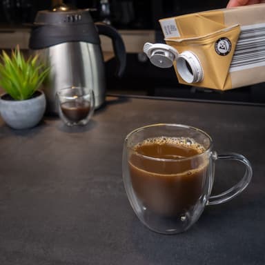 FUNKTION: Tack vare den dubbla väggen håller sig kalla drycker kalla längre och varma drycker varma längre. Väggen förblir kall, vilket innebär att det inte finns någon risk för brännskador. Dessutom finns det ingen vattenring.