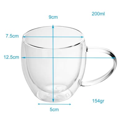 2x Termosglas med handtag 200-250 ml Diskmaskinssäkert och värmetåligt för cappuccino, te, vatten etc.