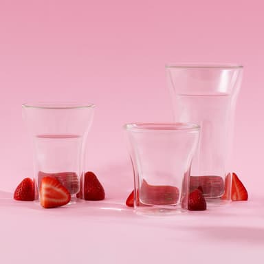 De här stilenliga dubbelväggade glasen är lättviktiga att hålla och enkla att rengöra, och finns tillgängliga i olika storlekar, vilket gör dem idealiska för att servera alla dina favoriter bland varma och kalla drycker.