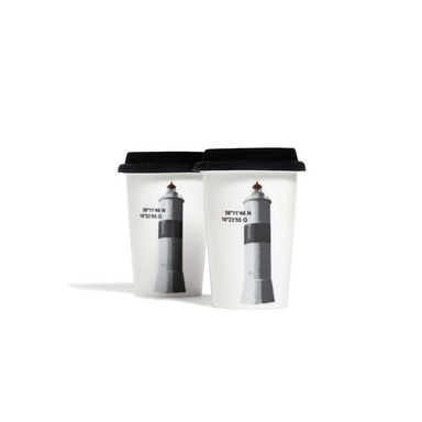 2-pack porslinsmuggar med silikonlock med motiv av fyren Långe Jan.