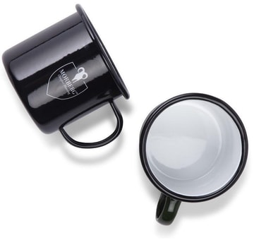 Porslinsemaljerad metallmugg som är stöttålig och perfekt för skogsturen eller för morgonkaffet.
