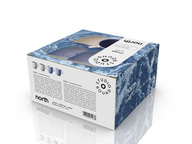 Setet består av fyra krus som matchar två och två. Krusen i servisen North rymmer 33 cl och är utformade så de tillsammans med handtagens rundade former återspeglar bokstaven O i namnet och logotypenLäs mer om produkten