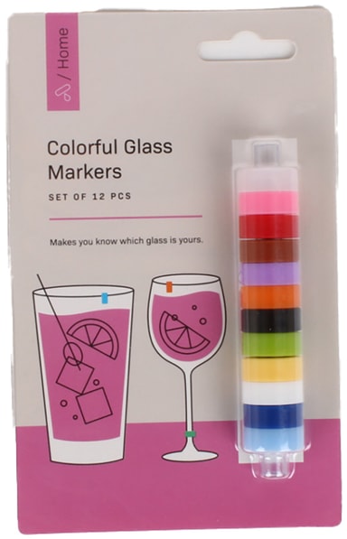 A Home glasmarkörer A100035 är 10 färgglada, återanvändbara glasmarkörer, idealiska för fester för att undvika glasförväxling. Inkluderar en hållare för enkel förvaring.Läs mer om produkten