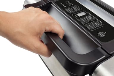 Caso FastVac 500 vakuumförpackare CS1409 (130 watt) har 30 cm breda påsar för att försegla kött och grönsaker för att minska matsvinnet. Den har en avtagbar vakuumkammare, temperaturkontroll, en folielåda och en inbyggd folieskärare.Den har även en marineringsfunktion för kött och inlagda grönsaker.