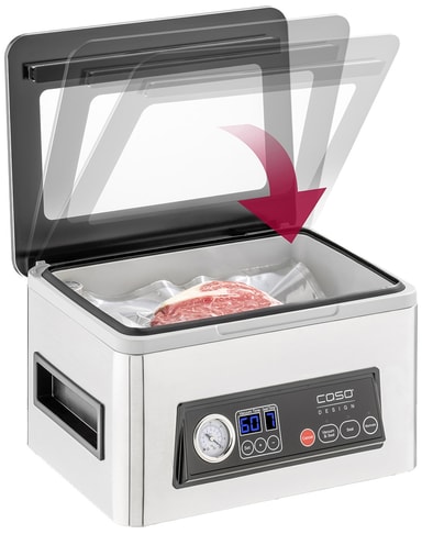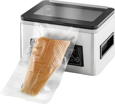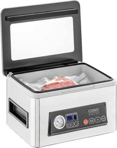 Caso VacuChef 50 vakuumförpackare CS1416 förseglar kött, grönsaker med mer för att minska matsvinnet. Den har en avtagbar vakuumkammare, temperaturkontroll, en folielåda och en inbyggd folieskärare.Läs mer om produkten