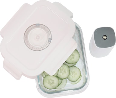 Håll din mat fräsch längre med FoodEcoBox vakuumbox VCJ-02G. Den rektangulära vakuumlådan säkerställer smart matförvaring och minskar avfallet. Denna vakuumlåda rymmer upp till 630 ml mat.Läs mer om produkten