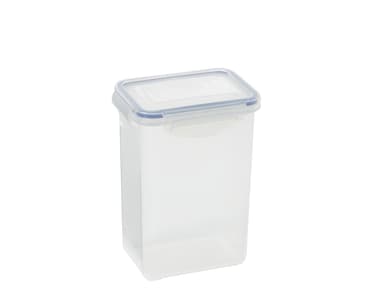 Förvaringsburk Funktion 1,4 liter Rektangulär, storlek 130 x 94 x 180 mm. Lufttäta förvaringsburkar med 4 clips och gummikant. Kan användas i mikrougn. Öppna alltid locket vid användning i mikkrougn. Tål frys. Tål maskindisk. Lätta att stapla.Läs mer om produkten