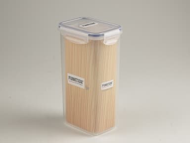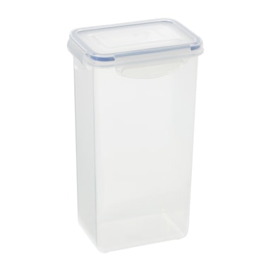 Förvaringsburk Funktion. 1,8 liter Rektangulär, storlek 130 x 94 x 231 mm. Lufttäta förvaringsburkar med 4 clips och gummikant. Kan användas i mikrougn. Öppna alltid locket vid användning i mikkrougn. Tål frys. Tål maskindisk. Lätta att stapla.Läs mer om produkten