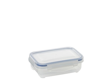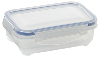 Förvaringsburk Funktion 310 ml Rektangulär, storlek 142 x 99 x 42 mm. Lufttäta förvaringsburkar med 4 clips och gummikant. Kan användas i mikrougn. Öppna alltid locket vid användning i mikkrougn. Tål frys. Tål maskindisk. Lätta att stapla.Läs mer om produkten