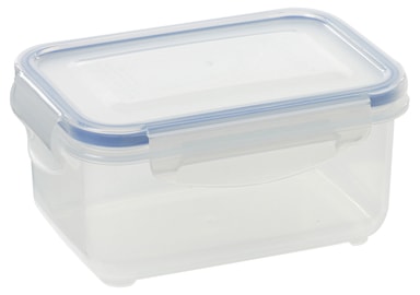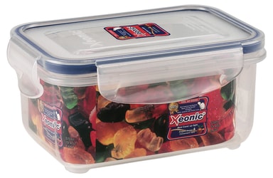 Förvaringsburk Funktion 530 ml Rektangulär, storlek 142 x 99 x 99 mm. Lufttäta förvaringsburkar med 4 clips och gummikant. Kan användas i mikrougn. Öppna alltid locket vid användning i mikkrougn. Tål frys. Tål maskindisk. Lätta att stapla.Läs mer om produkten
