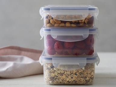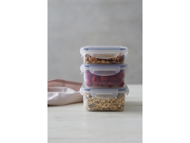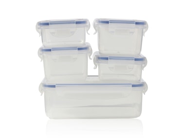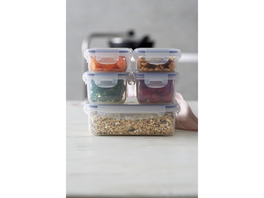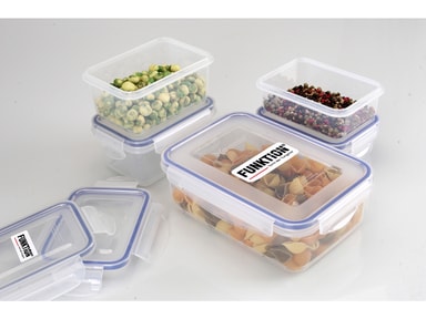 Förvaringsburkar 10 delar. Funktion Innehåller: Fyrkantiga burkar med lock 2 st 300 ml 2 st 450 ml 1 st 1,1 liter Lufttäta förvaringsburkar med 4 clips och gummikant. Kan användas i mikrougn. Öppna alltid locket vid användning i mikkrougn. Tål frysLäs mer om produkten