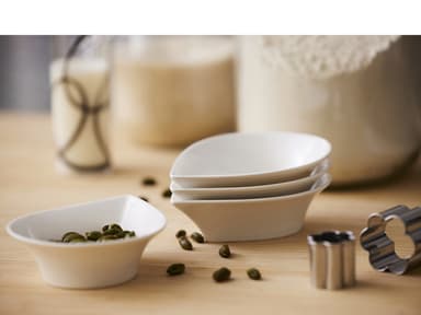 Droppskål 13 cm 4-pack Blomsterberg 12,7 x 10 x 3,4 cm Ugnsfast, vitt porslin, max 200° C Kan användas i mikron Tål diskmaskin Finns dessutom i storlekarna 20, 24, 28 och 36 cmLäs mer om produkten
