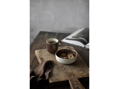 Den här skålen i servisen North är 15 cm i diameter och 5,7 cm hög, den perfekta storleken för frukostfilen eller en liten sallad. Skålens rundade form återspeglar bokstaven O i namnet och logotypenLäs mer om produkten