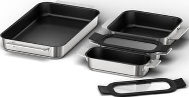 Bosch flexpannset HEZ9FF040 är lämplig för induktionshällar och i ugnen vid temperaturer upp till 220°C. Den har en slitstark 3-lagers non-stick beläggning. Smart designad för att enkelt staplas och förvaras.Läs mer om produkten