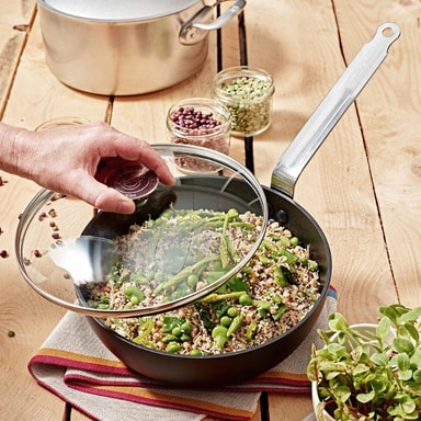 Elegant glaslock som passar de flesta kastruller, grytor och stekpannor. Locket hjälper till med långsam tillagning och håller maten varm. Lockets kanter och handtag är tillverkade av rostfritt stål.Läs mer om produkten