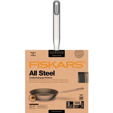- Fiskars All Steel stekpanna är tillverkad av återvunnet rostfritt stål och erbjuder en hållbar och trivsam matlagningsupplevelse.