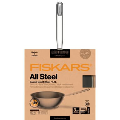- Fiskars All Steel wok erbjuder en hållbar och trivsam matlagningsupplevelse tack vare återvunnet rostfritt stål.