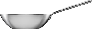 Fiskars Norden wokpanna, 28 cm. Den obelagda Norden-wokpannan i stål har en flerskiktsstruktur som värmer jämnt över pannans hela bredd. Dess form och höga kanter är perfekta för wokar och matlagning av grönsaker. Aluminiumkärnan mellan de inre och yttre stålskikten värms upp jämnt och effektivt på alla typer av kaminer. Konsistensen på basen gör det lätt att breda matolja eller smör. Det snygga, rostfria handtaget värms inte upp lätt, vilket ökar användarkomforten. Värmebeständig upp till 270 grader vid gräddning och i ugn. Tillverkad i Finland.