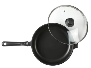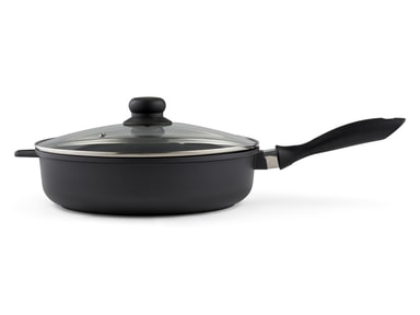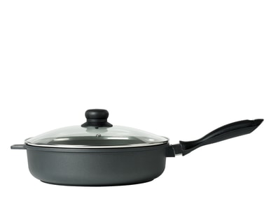 Sautépanna 28 cm, med glaslock och ergonomiskt bakelithandtag. 7,5 cm hög. Passar alla värmekällor. 4 mm induktionsbotten för bra och jämn värmefördelning. Keramisk non-stick-beläggning gör pannan lätt att rengöraLäs mer om produkten