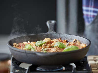 Stekpanna i gjutjärn. Många möjligheter i köket - baked beans, klassisk äggkaka, gulasch, sheppards pie, potatisfrikasse, fläskkotlett i tomat och rosmarin. 26 cm i diameter Perfekt till alla värmehällar - inkl induktionLäs mer om produkten