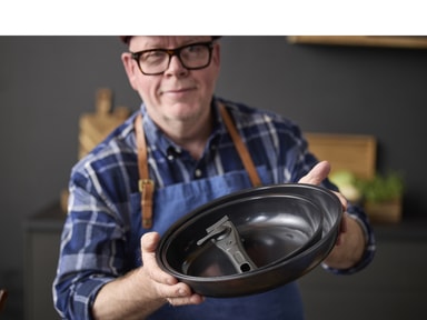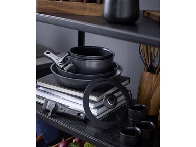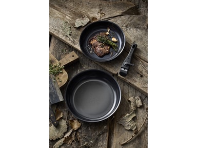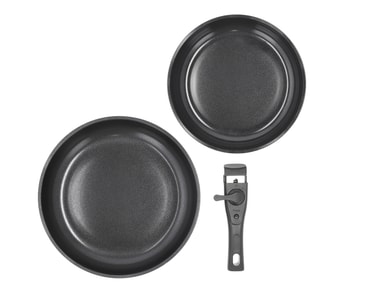 I setet ingår två stekpannor 24 och 28 cm samt handtag. Denna aluminiumserie har en svart keramisk beläggning och avtagbart handtag. Ett funktionellt sortiment av bärbara och praktiska kastruller och stekpannorLäs mer om produkten