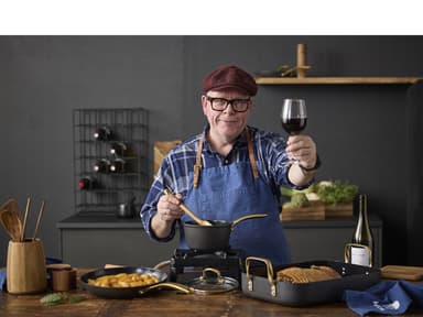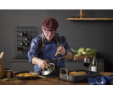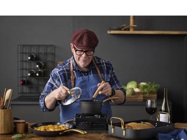 Brasserie-serien är tillverkad i aluminium. Kastrullerna och stekpannorna har en keramisk beläggning på insidan, svart beläggning på utsidan och matt mässingsfärgade handtag och greppLäs mer om produkten