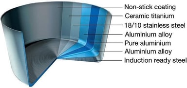 Ytterdiameter på överkanten: 24 cm Bottendiameter: 16,3 cm Vikt: 1,41 kg Tillverkningsmaterial: Rostfritt stål av typen 18/10 och aluminium Passar alla spistyper, inklusive induktion.