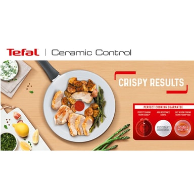 TEFAL Ceramic Control hjälper dig att få den perfekta, knapriga ytan när du lagar mat och kommer säkert att bli en oumbärlig del av din köksutrustning. Den högkvalitativa keramiska mineralbeläggningen tål både höga temperaturer och tuff användning – perfekt i jakten på en härlig, knaprig stekyta. Den smarta temperaturindikatorn Thermo-Signal™ ändrar färg när pannan är klar för stekning, och den effektiva induktionsbottnen Thermo-Fusion™ säkerställer snabb uppvärmning och jämn värmefördelning.