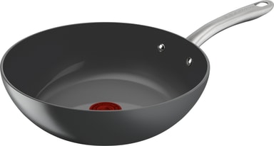 Tefal (RE)NEW+ wok kombinerar innovation och minskat miljöavtryck för att tillaga mat på ett helt nytt sätt - ekologiskt. Woken är tillverkad i Frankrike av material som har lägre miljöpåverkan än vanligt. Aluminiumramarna på stekpannorna är gjorda av 100 % återvunnet material*, vilket innebär ett mindre miljöavtryck. Woken har en säker och hållbar keramisk non-stick-beläggning som förhindrar att mat fastnar på pannan under tillagning, även om lite eller inget fett eller olja används. Det är därför det är perfekt för att tillaga hälsosamma måltider. Stekegenskaperna hos produkten Tefal (RE)NEW+ förbättras bara ännu mer när den används utan fett. Beläggningen är helt säker, eftersom den inte innehåller bly, kadmium eller PFOA-föreningar**. Tefal Renew+ stekpannor har inte kompromissat med non-stick och användarvänlighet, så både att rengöra pannan och att tillaga utsökt mat är enkelt. Non-stick-beläggningen sitter inuti och utanför produkten.