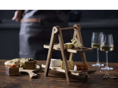 Det vackra serveringssetet med två avlånga fat, allt i vackert akaciaträ, är både vackert och funktionelltLäs mer om produkten