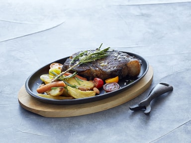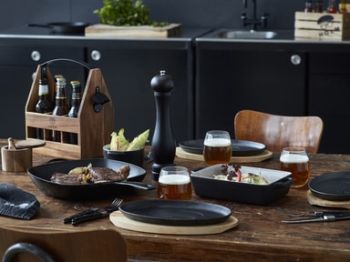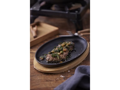 Tallrik av gjutjärn och underlägg av lönn, passar perfekt till servering men också till tillagning i grill eller ugn. 27 x 17,5 cm. Gjutjärnstallriken tål att vara i ugn (dock inte underlägget i trä)Läs mer om produkten