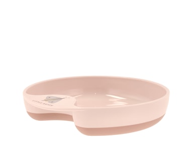 Med Mio Barntallrik är det slut med att köra runt maten i cirklar på tallriken. Tallriken har nämligen en hög kant och en praktisk form som gör att maten trycks in i ett hörn där det är enkelt att fånga den med skeden.Läs mer om produkten