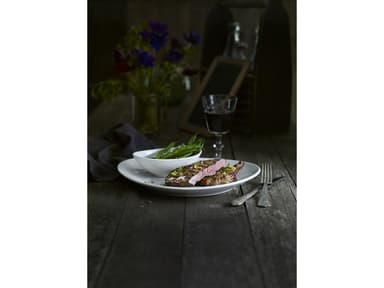 Klassisk, oval steaktallrik som mäter 23 x 20,5 cm och passar utmärkt till den saftiga steken. (210101)Läs mer om produkten
