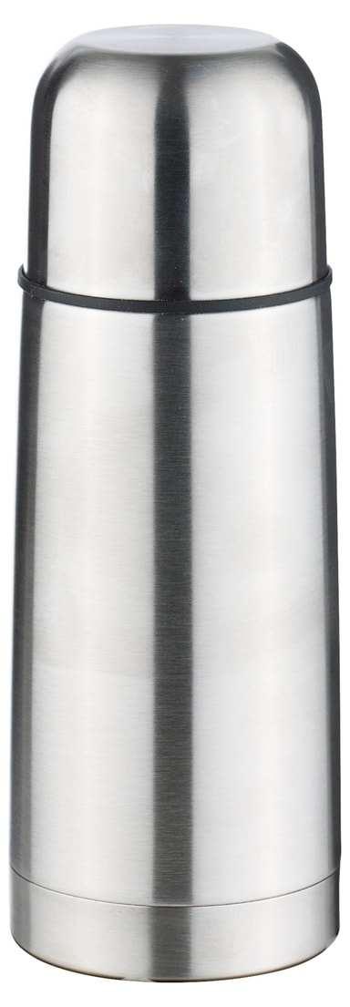 Termosflaska 0,35L 18/8 stål. Praktisk propp med tryckknapp för enkel användning. Förvärmmed varmt vatten från kranen innan flaskan fylls med varmt kaffe eller te.Läs mer om produkten