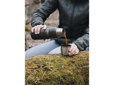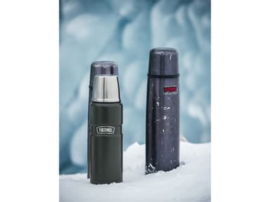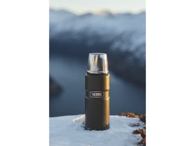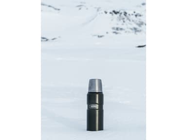 Thermos Stainless King 470 ml termosflaska i rostfritt stål. Locket kan användas som kopp, och flaskan lämpar sig för både kalla och varma drycker. Håller innehållet varmt i upp till 18 timmar och kylan i 24 timmar.Läs mer om produkten