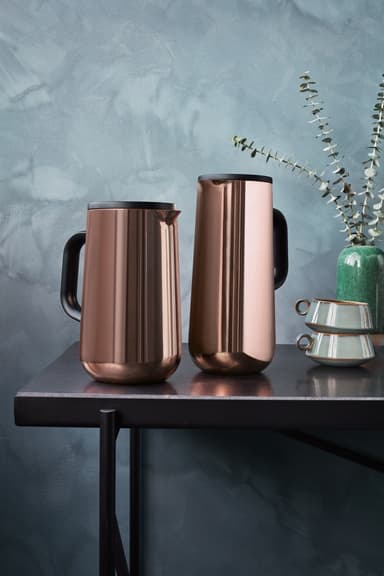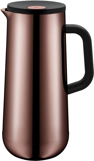 Termoskannan från WMF Impulse-serien håller drycker varma eller kalla tack vare den högkvalitativa glasinredningen. Det välstängande skruvlocket garanterar täthet och hällning utan stänk och dropp. Den moderna designen och trendiga kopparfärgen gör kLäs mer om produkten